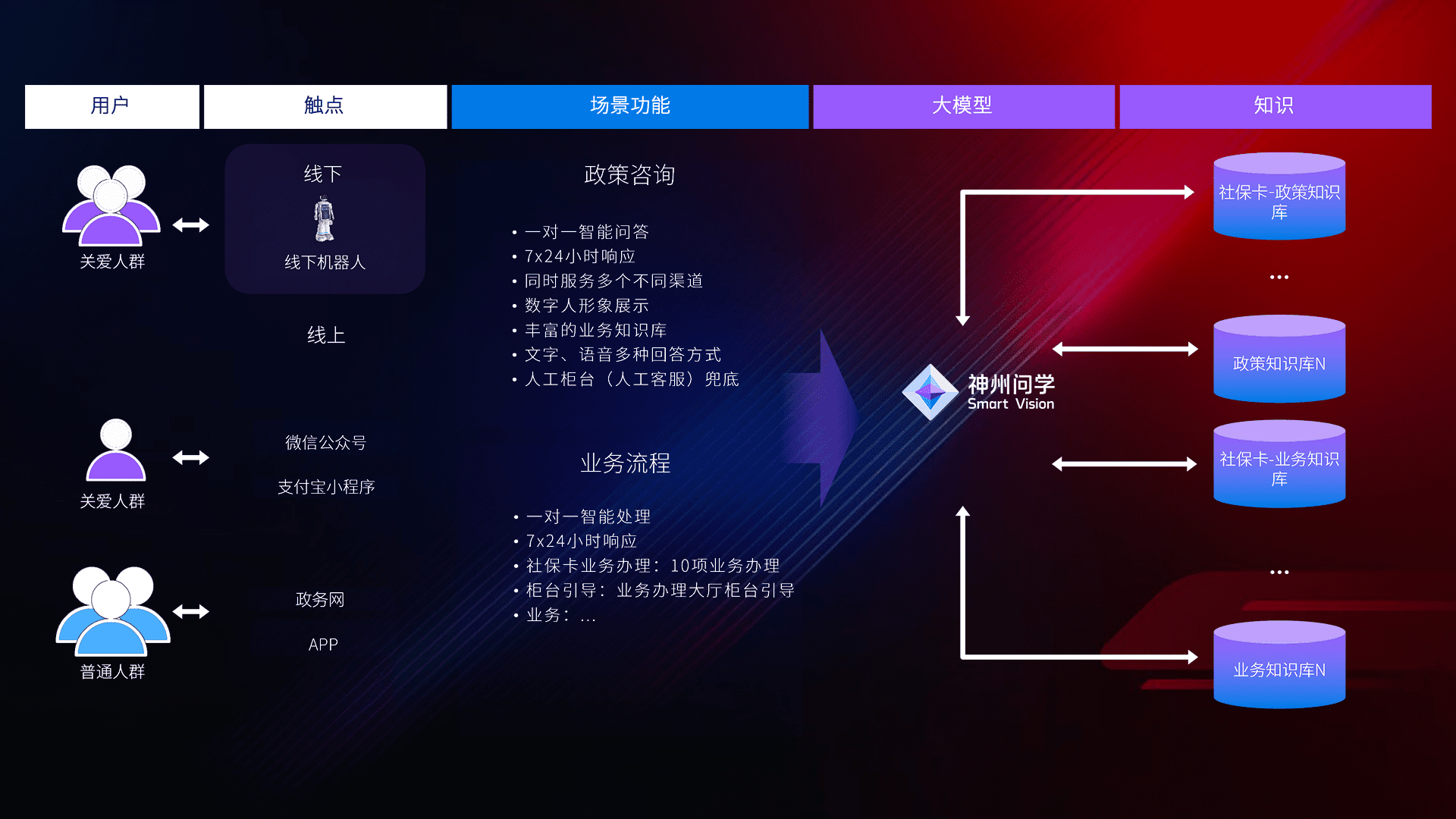 在服务大厅部署客服机器人,,,在线上应用和小程序配置客服数字人,,,,724小时为群众解答常规问题,,,客服机器人无法处理的,,,,转现场人工处理。。。